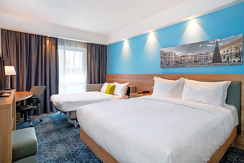 The family room offers a carpeted floor, heating, as well as a private bathroom featuring a walk-in shower and a hairdryer. The spacious air-conditioned family room provides a flat-screen TV with satellite channels, soundproof walls, a tea and coffee maker, a safe deposit box as well as city views. The unit offers 4 beds.